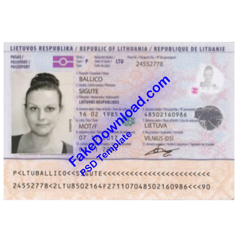 You can download and buy Lithuania passport template , Lithuania driver's license template , Lithuania university template , Lithuania invoice template , Lithuania identity card Template , etc. through fakedownload store.