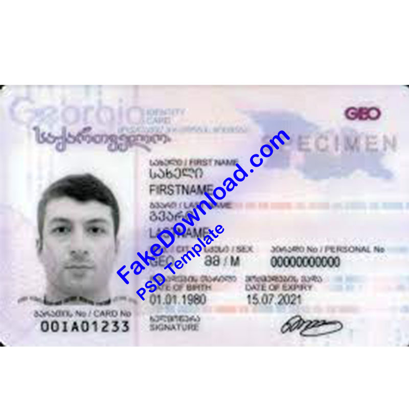 It is possible to buy fake Georgia national card template immediately and without restrictions by cryptocurrency. All transactions are processed automatically. By purchasing the Georgia national card template, you can download it within a few seconds.