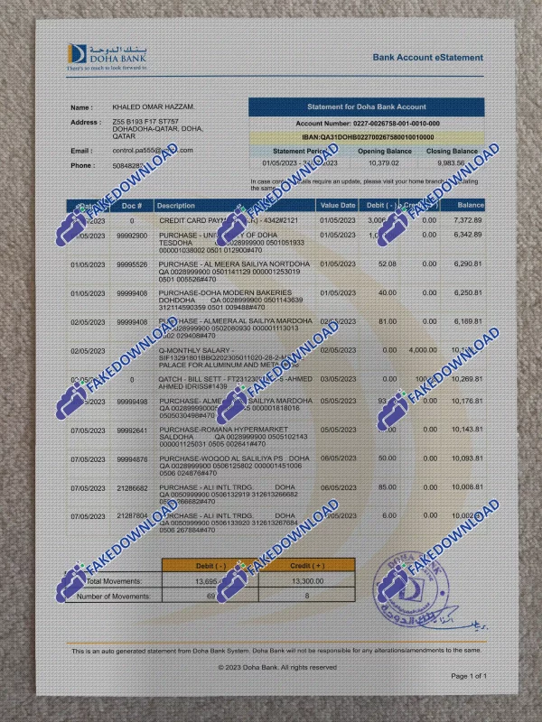 Qatar Bank Statement (psd) is a fake template that is professionally and expertly designed for its layers. Using this fake template file, you can design exactly a real example for yourself. You can buy this high-quality fake file at a low price without any restrictions.